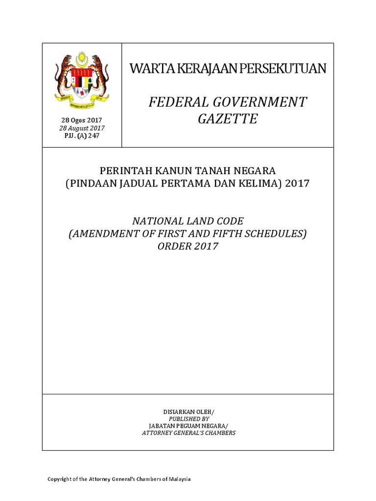 In this article, alexis yong mey ling highlights the changes in the national land code (amendment) act 2016 (nlc amendment before the coming into force of the nlc (amendment) act, a disposal of or dealing in any land or any interest in land which is subject to the. >>>> national land code malaysia.pdf <<<< we have managed to get. Land administration and land law practices are based on the torrens system introduced by the british. An act to amend and consolidate the laws relating to land and land tenure, the registration of title to land and of dealings therewith and the collection of revenue therefrom within the states of johore, kedah, kelantan, malacca. The principles in national land code 1965 that are found to be in line with islam the national land code 1965 provides for protection of ownership over land.